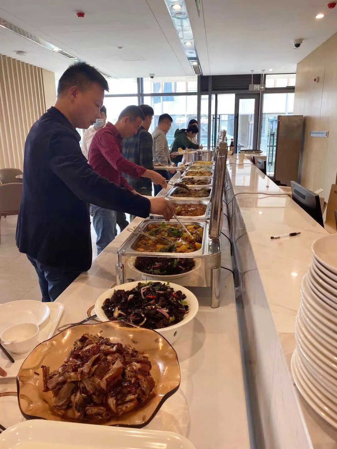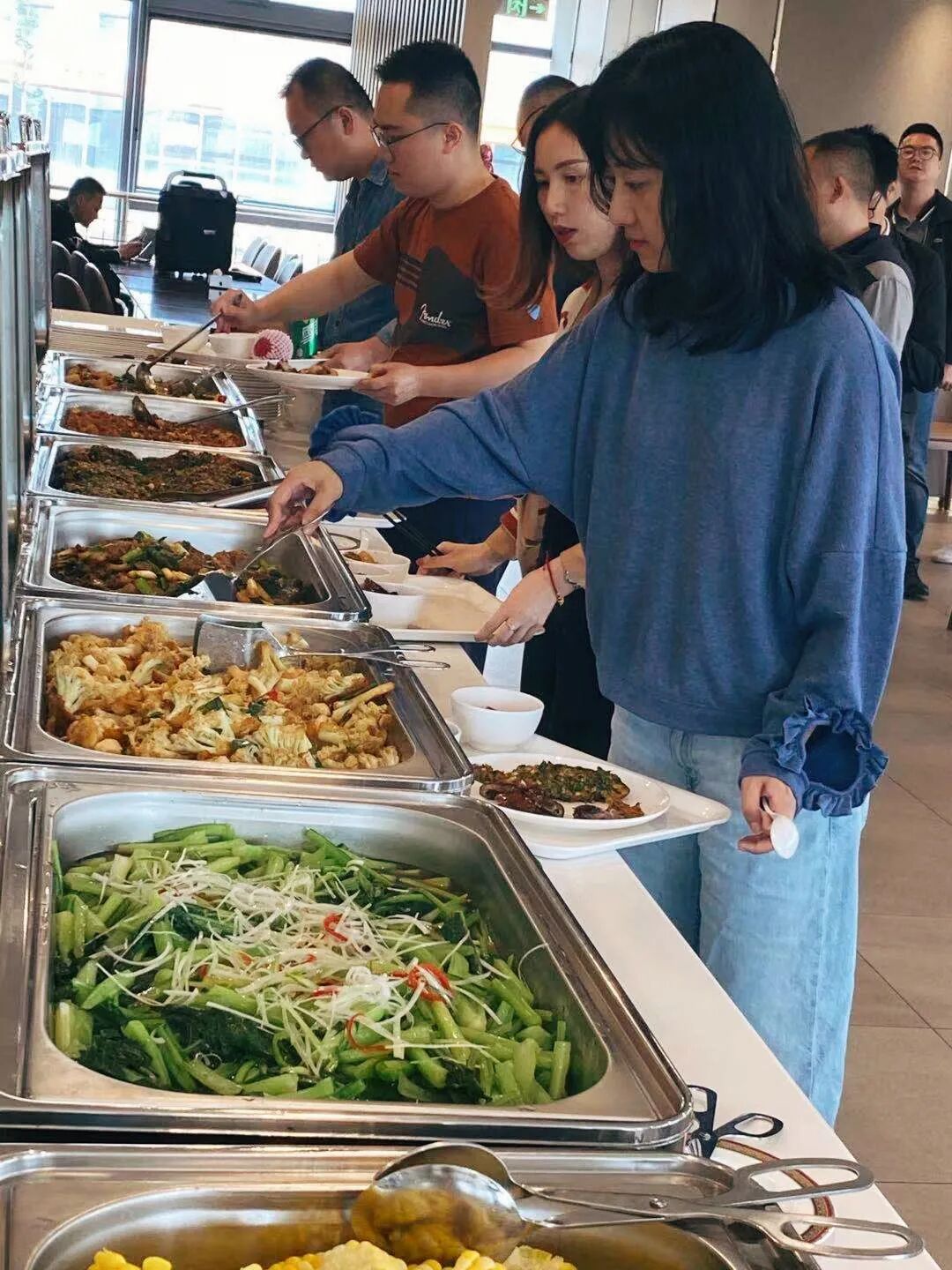 大家按先后顺序排队自助打餐、就餐